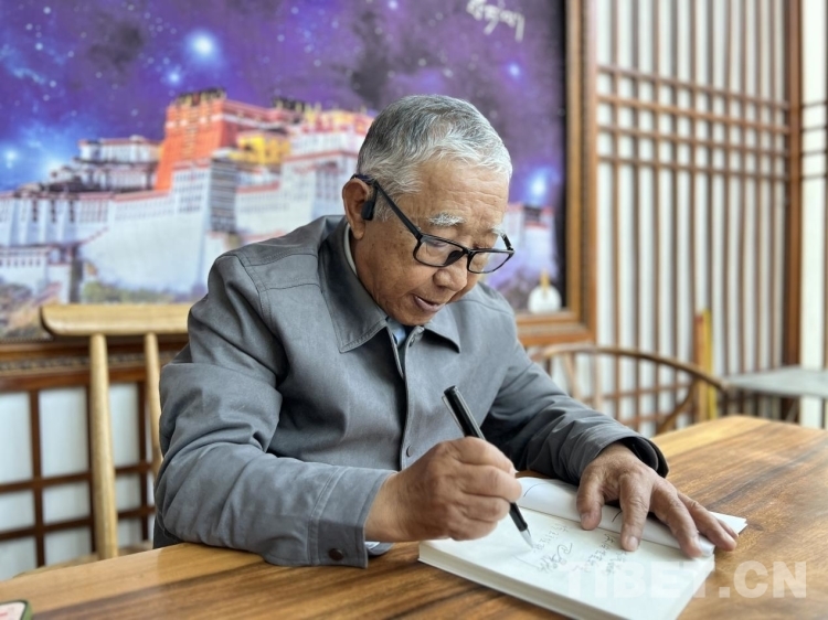 图为2023年10月巴桑罗布在个人著作《仓央嘉措略传》新书发布会上为读者签名 摄影:德吉卓玛