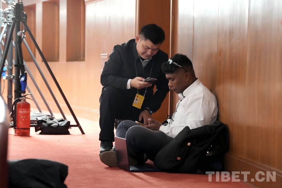 中国西藏网讯 3月5日上午9时,十四届全国人大四次会议在人民大会堂开幕。会场上,中外记者用各自的方式,记录、报道开幕会盛况。(中国西藏网 记者/边子捷 刘莉)