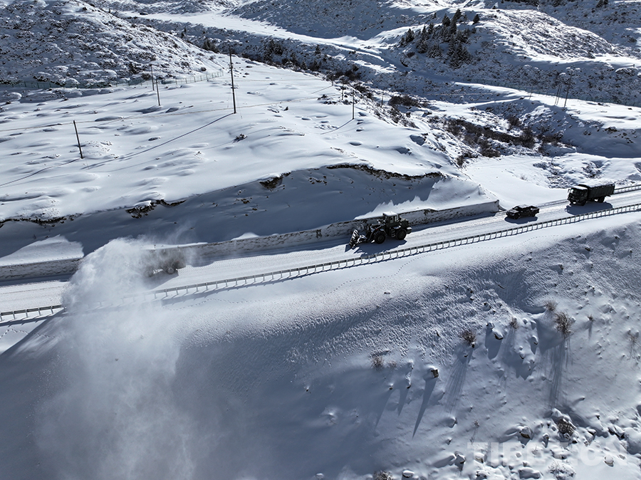 为实现高效救援,救援官兵把人员机械分成三个小组,重点是对风吹雪、高海拔,以及背阴路段,还有一些陡坡、急弯等路段进行处置。