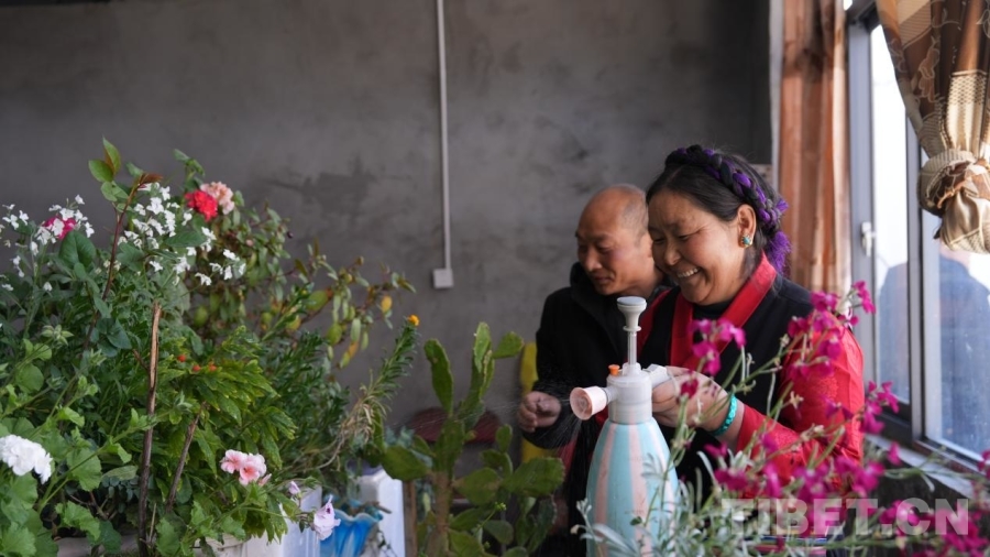 徐文军、央珍夫妇养护新居绿植