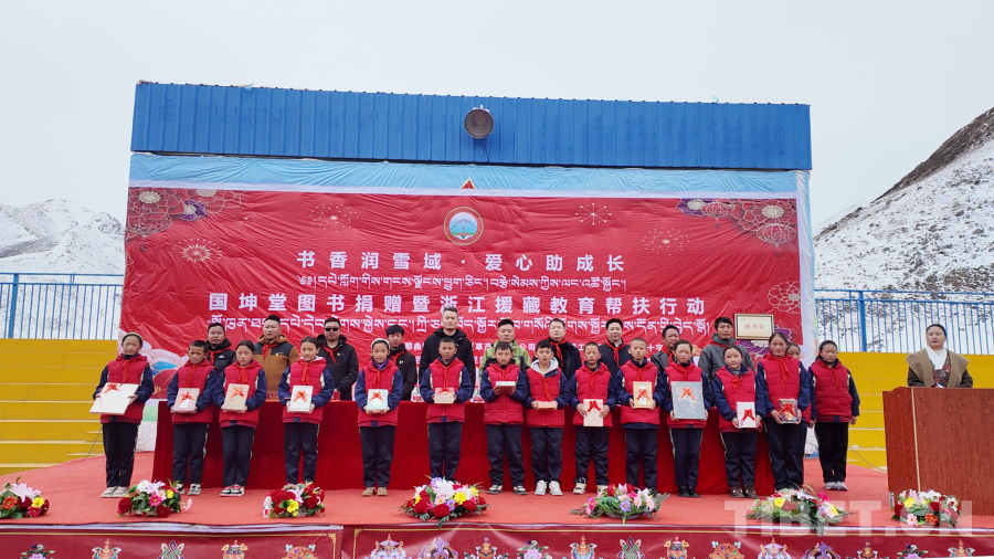 活动现场,杭嘉援藏工作组援藏干部与爱心人士将精心挑选的图书送到孩子们手中。本次活动共捐赠各类精品图书数千册、价值约11万元,丰盛的精神食粮为海拔4500多米校园里的孩子们送去了知识的温暖与力量。
