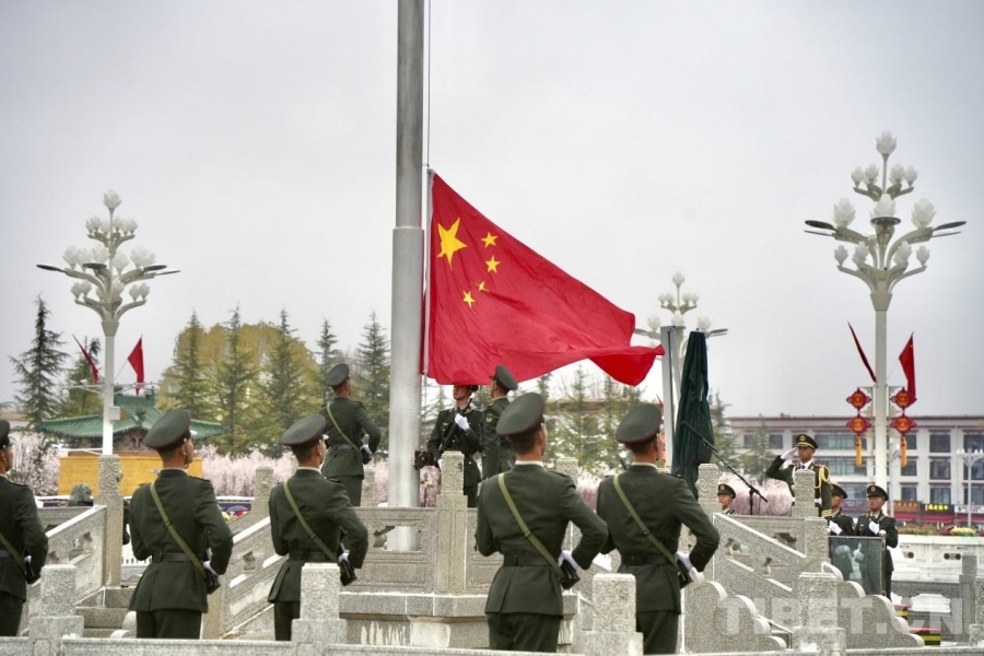3月28日,来自拉萨市的学生群体参加升旗仪式