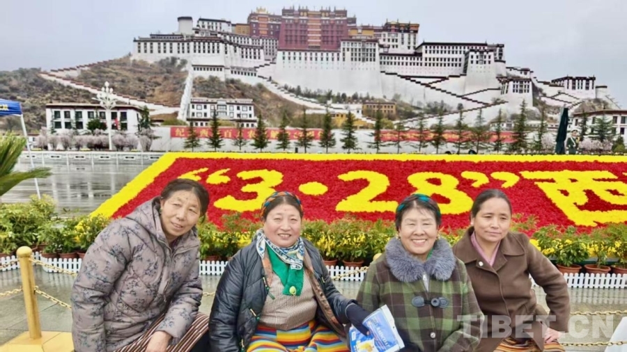 清晨的布达拉宫广场,红墙白宫在纷扬的雪幕中巍然矗立,广场中央摆放的“3·28西藏翻身农奴的节日”字样的鲜花格外醒目。来自全区的各族各界代表身着节日盛装,冒着风雪早早来到现场,整齐列队。