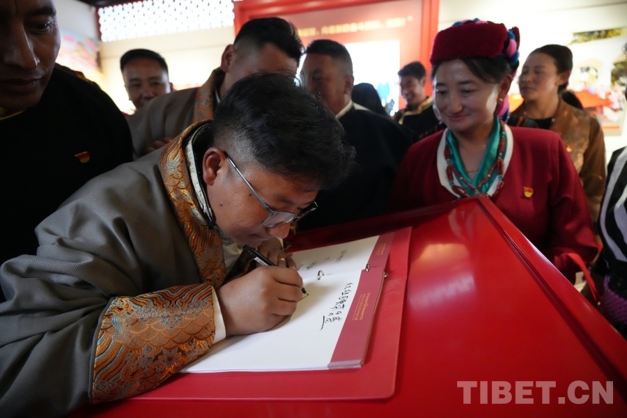 在蒙藏学校旧址,山南基层群众代表在参观后纷纷在留言簿留言,表达对祖国的热爱。 摄影:王茜