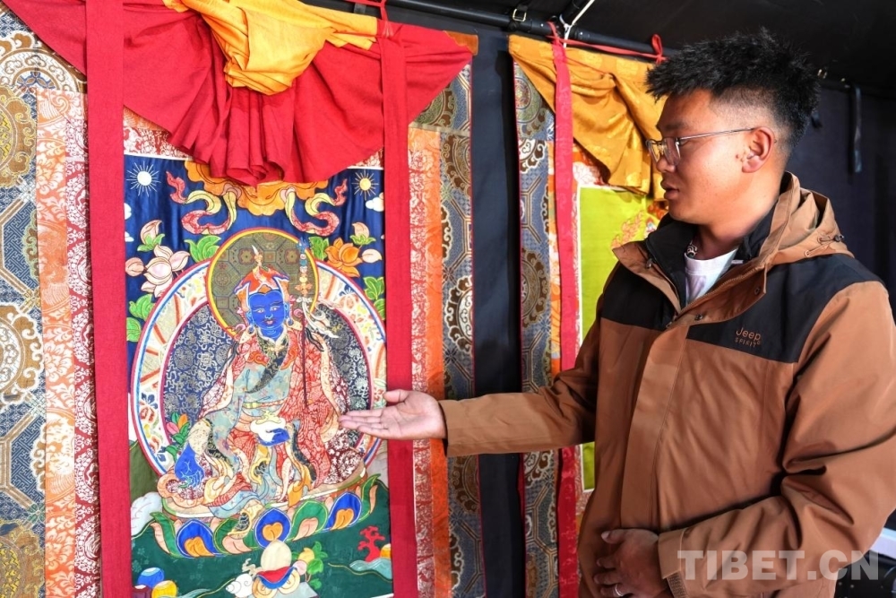 谈及和堆绣唐卡的结缘,索朗边久说:“我本身就对唐卡文化非常热爱。一次偶然的机会,我在一场堆绣专题展览上结识了堆绣技艺的传承人,被其作品的立体感和精美深深震撼,于是决定跟随他系统学习堆绣,从此走上了传承这条路。”