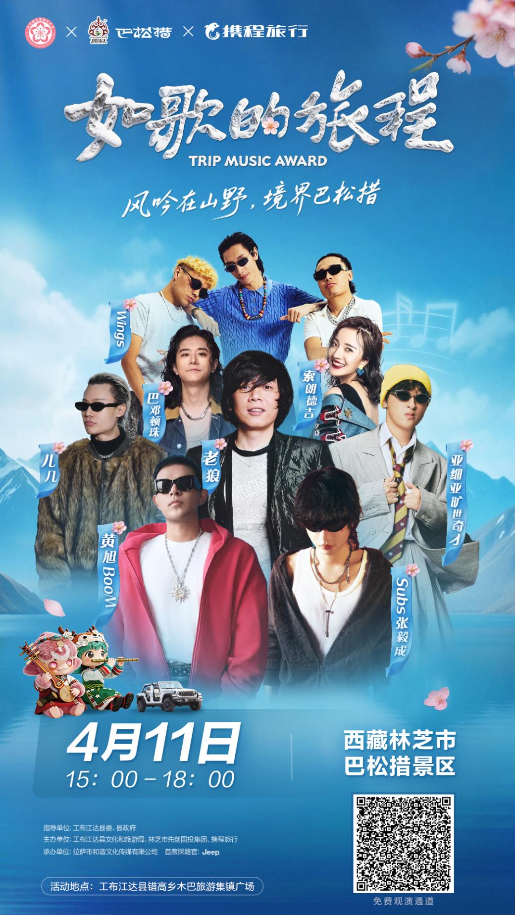 中国西藏网讯 为加快推动林芝文旅产业提质升级,持续放大桃花节品牌效应,由林芝市、工布江达县联合携程集团重磅打造的《如歌的旅程》“风吟在山野 境界巴松措”主题演唱会,将于4月11日15时在西藏林芝巴松措景区木巴旅游集镇广场正式开唱。本次活动作为工布江达县2026年桃花旅游推介文艺演出,将面向所有游客及市民免费开放,扫码预约即可入场。活动依托G318自驾热潮,将多元音乐搬进桃花、雪山与湖泊交织的实景舞台,进一步释放林芝“雪域江南”与巴松措“户外天堂”的品牌势能,推动林芝从“桃花打卡地”向“户外文旅目的地”升级。