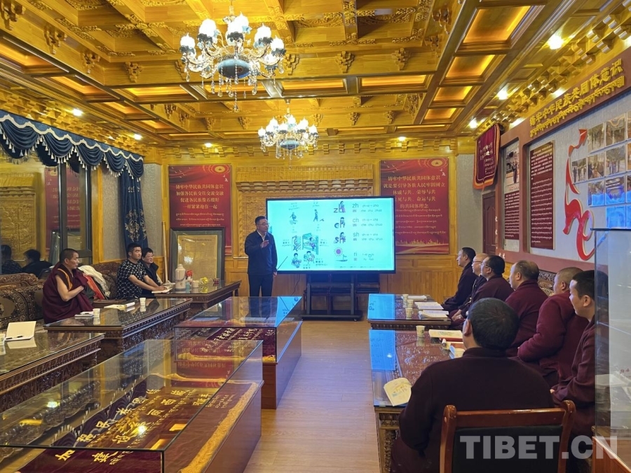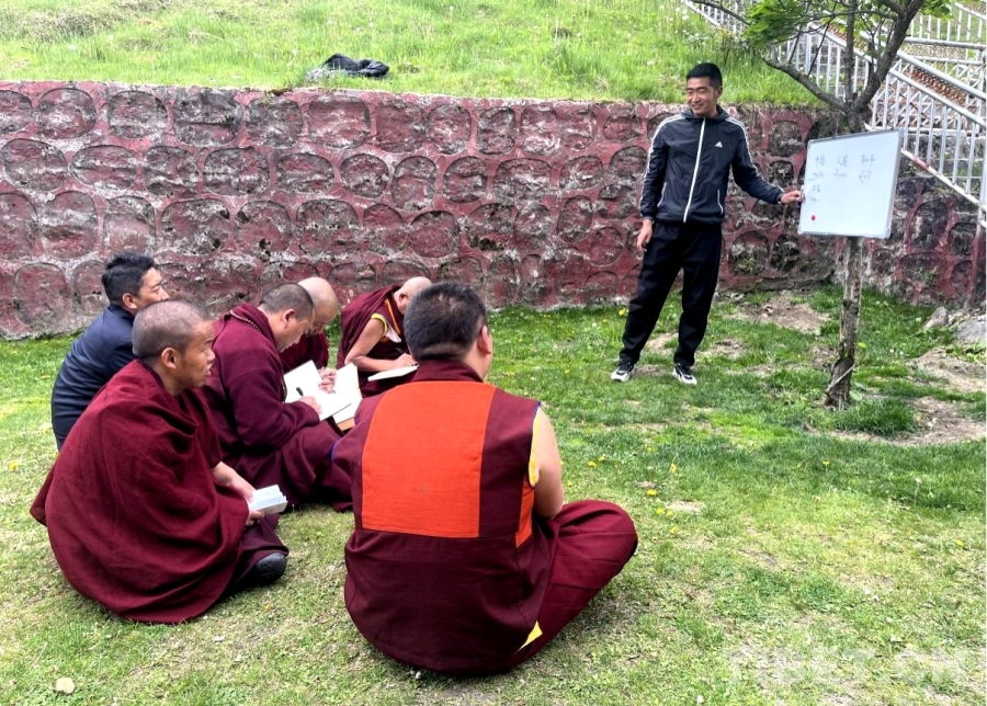 推广国家通用语言文字是铸牢中华民族共同体意识的重要途径。为帮助僧人解决外出就医、日常沟通的实际困难,扎木镇寺管会于2025年3月开办了国家通用语言文字培训班,采用“课堂精讲+视频示范+情景模拟+精准帮扶”的模式,每周安排2节课,每节课c60分钟,内容以日常用语为主,同时融入宗教和故事类内容。“大家积极性很高,特别是年轻僧人学习主动性强,有的还自费购买课件、主动寻找学习平台。”