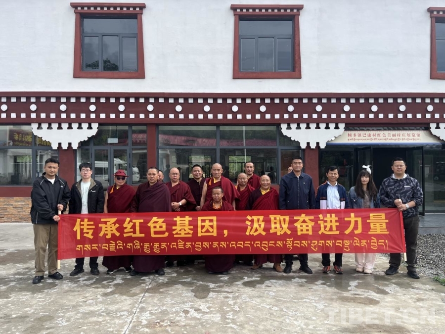 多东寺僧人参观巴康村红色美丽村庄展览馆,了解当地村容村貌变化