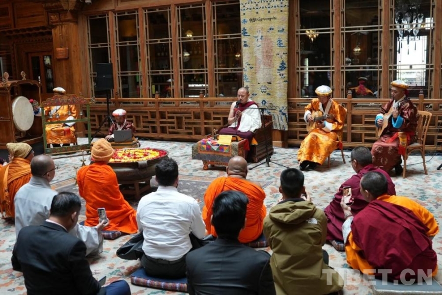 当晚,参访团聆听了中国非物质文化遗产“古尔鲁”道歌。该艺术第42代传承人——羊日岗寺第七世帕洛活佛以摇鼗伴奏,旋律源于诵经曲调,悠扬动人。参访团成员们或静心聆听,或用视频记录下演奏的精彩时刻,完成了一次跨越语言与国界的音乐交流。