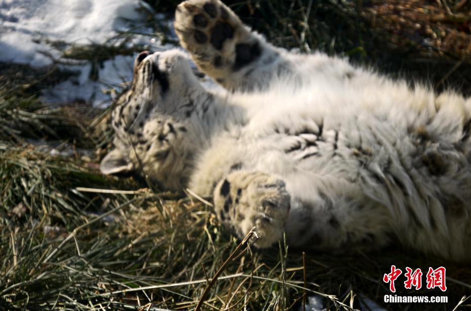 舔爪爪、咬尾巴、闭目养神、打哈欠、打滚……冬日午后,在青藏高原野生动物园雪豹“别墅”内,中国人工繁育成活首只雪豹傲雪“公举”各种“慵懒”,乐享冬日暖阳,“要豹豹”。青藏高原野生动物园供图