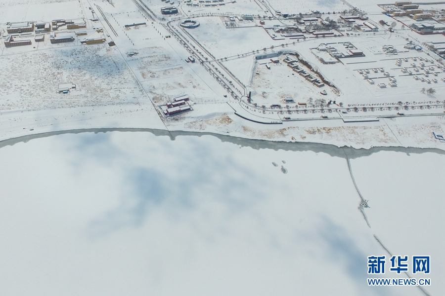 一场春雪,为青海湖披上了洁白的外衣(4月7日摄)。新华网 潘彬彬 摄