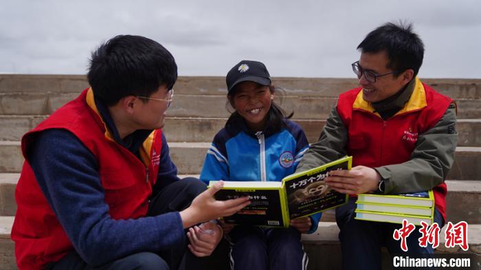 图为党员服务队队员与孩子一起阅读书籍。昂尕 摄