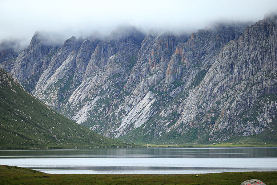 站在年保玉则的湖畔,湖面幽蓝深邃像是一面镜子,时间仿佛在这一刻都停止了,宁静和心静。望向远处,山峰叠峦直插缥缈的白云中;看向身旁,五颜六色的小花铺满了湖岸,牦牛低头饮着湖水,成群的裸鲤游走在湖边,这是生命的动静。