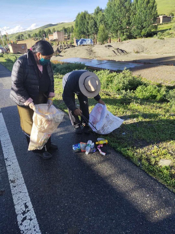 近日,四川省甘孜藏族自治州理塘县甲洼镇下依村的老人阿洛每天早早的就和同村的几位伙伴一起开始在G227线道路两旁捡饮料瓶,这是他们每天自觉都要做的工作,只要劳动了就会有积分,这个积分可是有大大的用途。