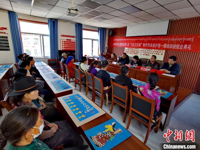 图为青海尖扎“五谷画”制作传承保护培训班结业现场。张添福 摄