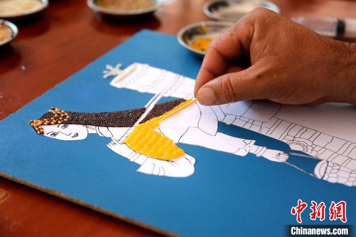 青海尖扎“五谷画”艺人似“神笔马良”:巧把粮食变金沙