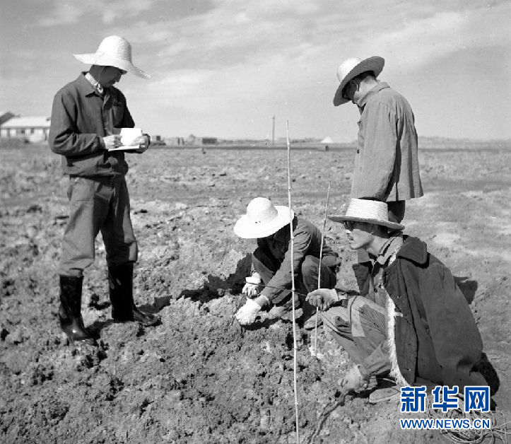 1978年盐湖技术人员在对盐湖资源进行勘探。(资料照片)
