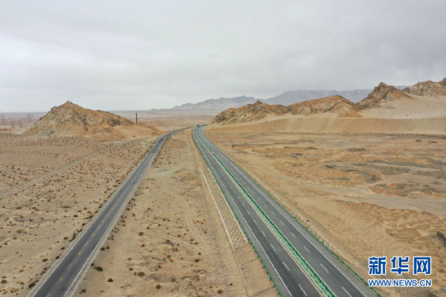 穿越柴达木盆地的国道G109线。(无人机照片,新华社记者王艳2月25日摄)