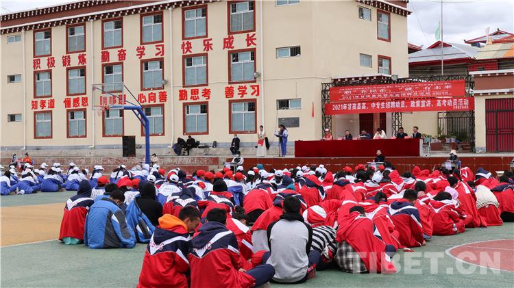 在康北民族高级中学分会场,甘孜县人力资源和社会保障局、共青团甘孜县委、甘孜县教育体育局负责人分别向来自康北民族高级中学和甘孜县民族中学的400余名即将毕业的高三学生宣传了高考、大学实习、创业就业以及参加志愿者活动的相关政策。