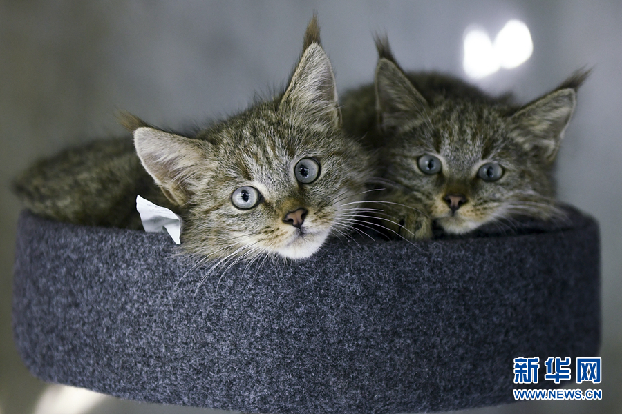 这是9月30日在西宁野生动物园拍摄的两只人工救助的荒漠猫幼崽。新华社记者 张龙 摄