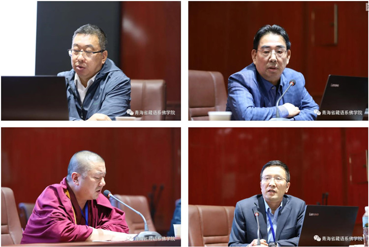 在主旨发言阶段,省藏语系佛学院党委书记程颐工介绍了省藏语系佛学院在推广使用国家通用语言文字方面的主要做法、取得成效和工作打算。省政协民宗委主任王化平从通用语言文字是祖国统一和民族团结的文化基础、语言文字是各民族文化交流的重要工具这两方面阐述了推广国家通用语言文字的重要意义;西南民族大学教授万果通过梳理藏传因明著作的汉译及研究成果,评析法尊法师、吕澂、王森三位学者在藏传因明学研究推广方面的学术成就,强调学习国家通用语言文字对于宗教的现实意义;省佛教协会副会长噶尔哇从编写佛学汉语教材的重要性、讲好佛学文化的历史渊源、继承保护佛学文化、加强佛学思想教育等四个方面强调了佛教界推广使用国家通用语言文字的重要性;青海师范大学教授龙生祥深入解说《藏语系佛学院汉语基础教程》的编写依据、原则、体例和内容,介绍了面向藏传佛教僧尼的汉语基础教程教学原则与方法,对佛学用国家通用语言文字课程建设提出意见建议。