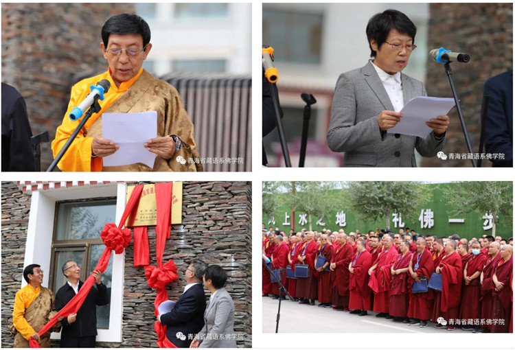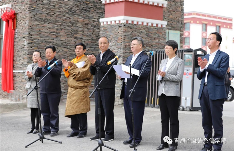 会议期间,还隆重举行了中华职业教育社“温暖工程”国家通用语言培训基地揭牌仪式,中央西藏工作协调小组办公室副主任斯塔,青海省委常委、统战部长、省政协党组副书记公保扎西,青海省政协副主席、省藏语系佛学院院长仁青安杰,青海省政协副主席、省中华职教社主任王绚出席,并向青海省藏语系佛学院授牌。公保扎西指出,“温暖工程国家通用语言培训基地”在省藏语系佛学院落户标志着青海省国家通用语言文字再提升工作新的开始,希望佛学院以此为契机,再接再厉,积极发挥好基地的平台优势作用,为创建民族团结进步示范省贡献力量。