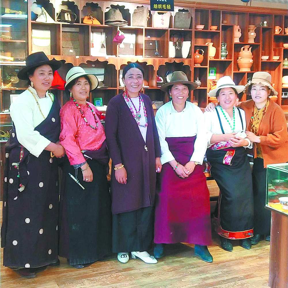 俄金扎西的母亲阿忠志愿加入“半边天妇女合作社”,妇女们利用牦牛毛和羊毛制作藏传纯手工艺产品,在不断学习、培训后,妇女们的手艺越来越精巧,她们编织的手机套、电脑包、时尚挎包、毡帽款式质朴、原料环保,深受都市人的喜爱,不仅远销省内外,甚至走向了世界。