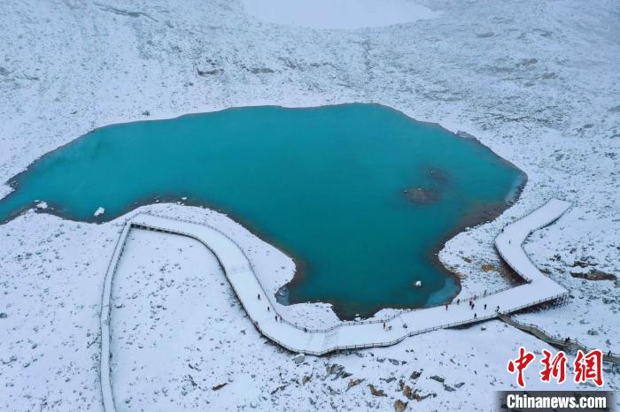 航拍达古冰川美丽的泪湖。肖蓉 摄
