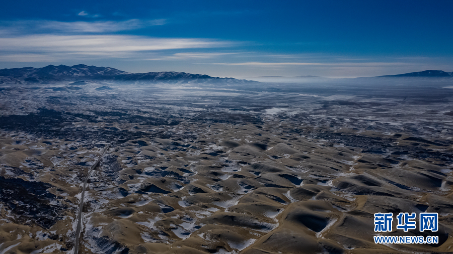 冬日青海湖畔的沙丘被冰雪覆盖。新华网 宋忠勇 摄