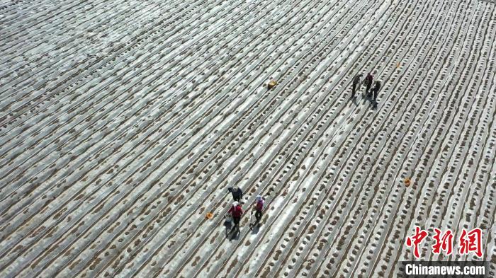 日前,青海省海东市化隆县查甫藏族乡约21000亩马铃薯种植基地,已完成播种。航拍依山开垦的基地时,覆盖的白色薄膜,场面密集而壮观。据悉,查甫乡不断扩大马铃薯“金蛋蛋”品牌影响力,今年预计收入可达数千万元人民币。