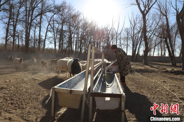 图为苏桂玲在德令哈惠然家庭农场内给牛羊喂食。吴婷婷 摄