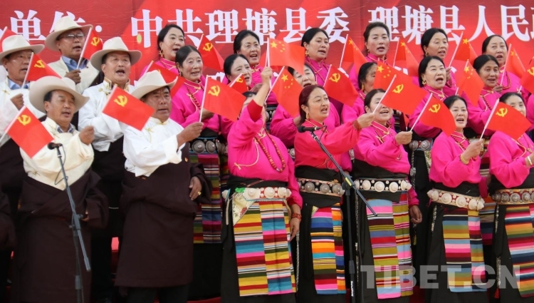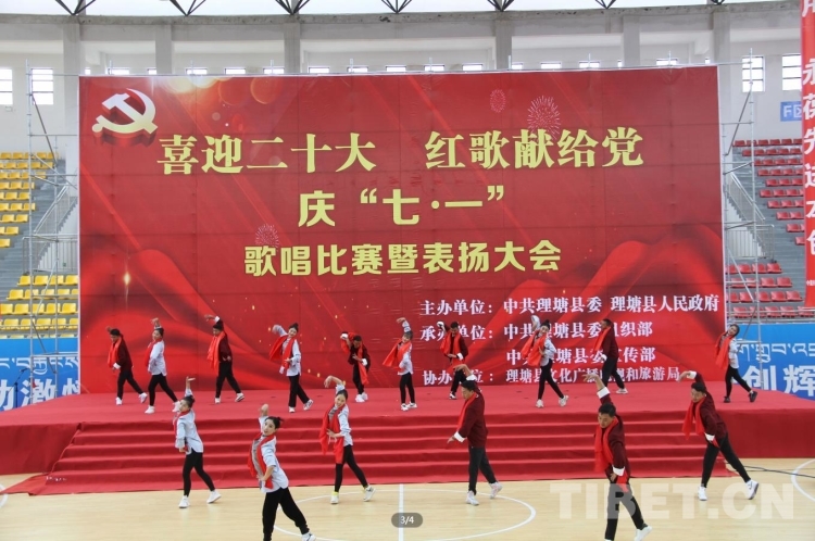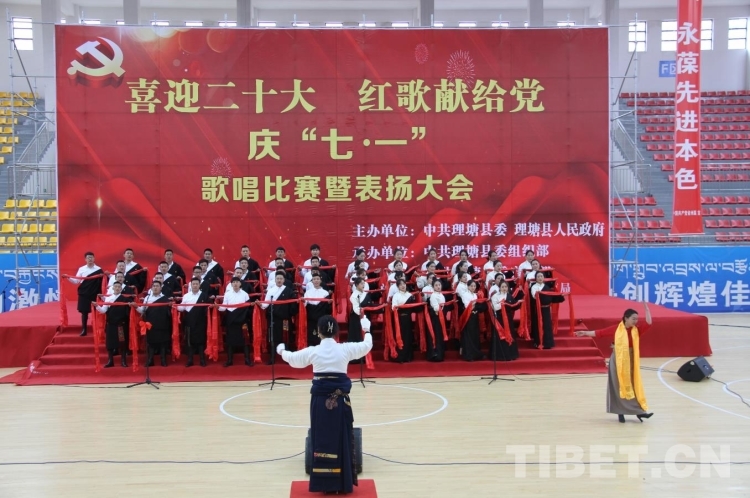 中国西藏网讯 7月1日,四川省甘孜藏族自治州理塘县举行“喜迎二十大 红歌献给党 庆‘七•一’歌唱比赛暨表扬大会”,高原藏家儿女用歌声和舞蹈表达感党恩、爱祖国、跟党走的决心和信心。(中国西藏网 通讯员/叶强平)