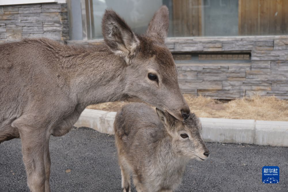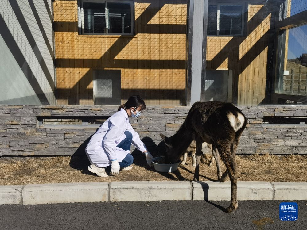 12月13日,张玉珍在基地给西藏马鹿喂食。受访者供图