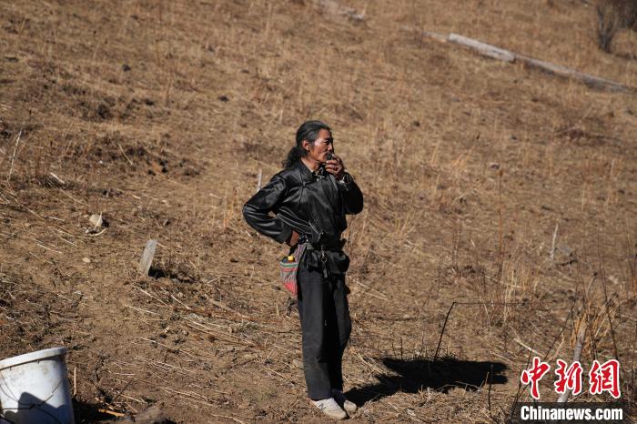 图为丹增培楚在牧场使用对讲机。刘冉阳 摄