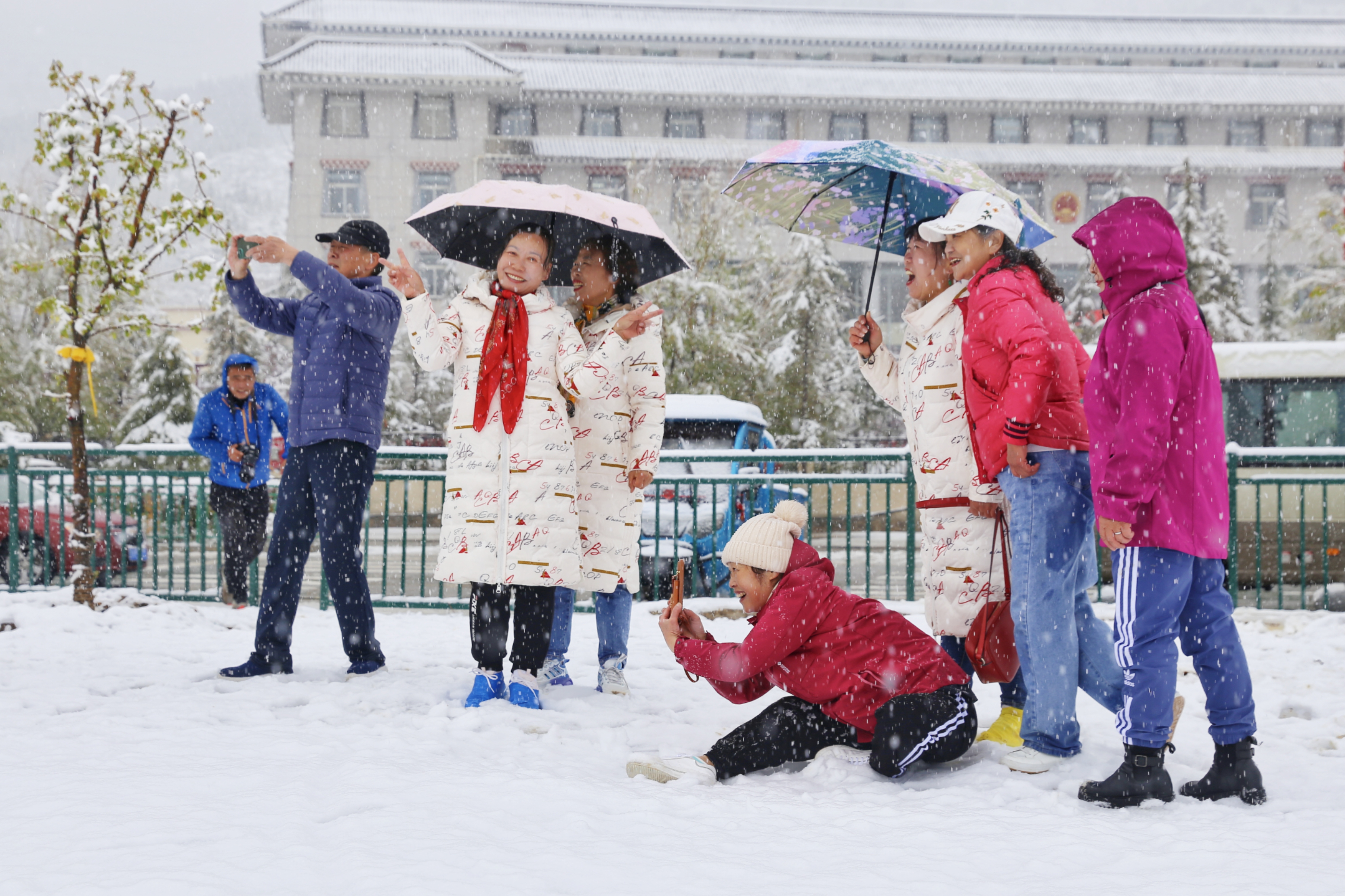 5月15日,香格里拉迎来一场夏雪,大雪纷飞的雪地中一群来自贵州的“嬢嬢团”正兴奋的玩雪、拍照,“太有意思了,五月也能玩到雪,很难得。”今年65岁的刘嬢嬢告诉记者,她们在香格里拉游玩三四天了,今天准备返程,出城路上被雪景吸引便索性再留出半天时间看雪。雪地中的嬢嬢们精气十足,捏雪球、劈腿、下腰、打滚……大家纷纷摆出自己最拿手的pose拍照记录下这令人惊喜的美景。