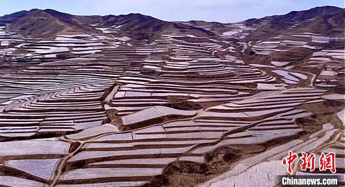 航拍青海藏乡万亩马铃薯基地:依山而垦,密集壮观
