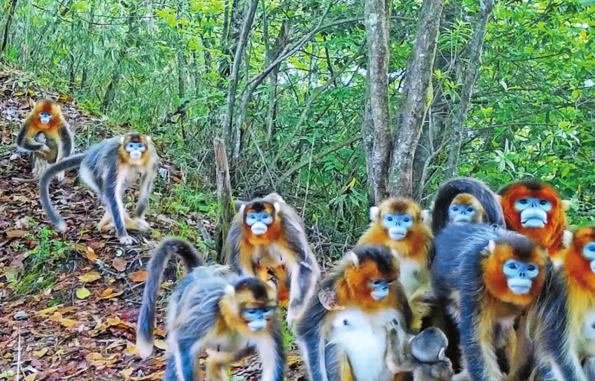 安放在柏林沟的红外相机拍摄到的金丝猴。