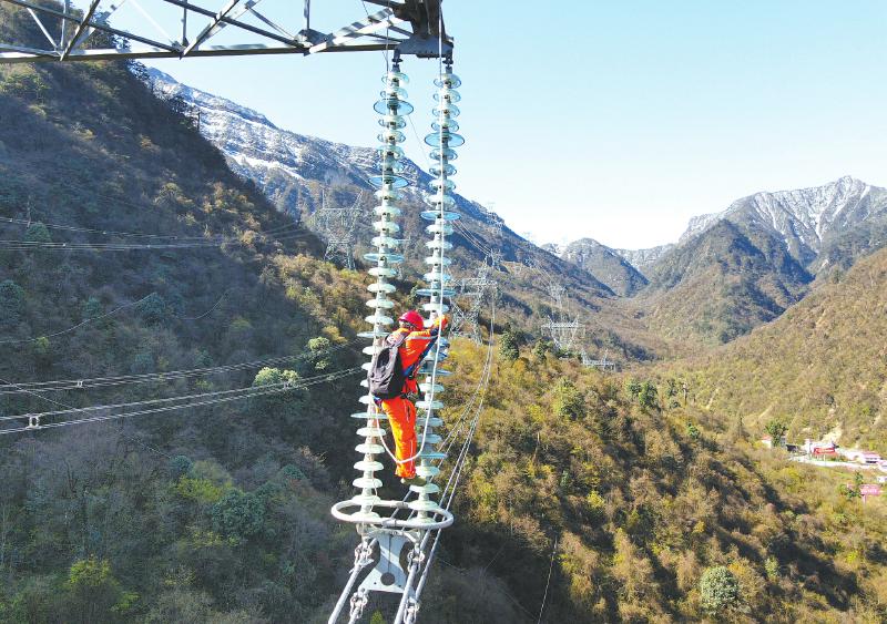国网四川送变电公司泸定分部员工刘云在二郎山检修500千伏甘姜二线。 潘柱东 摄
