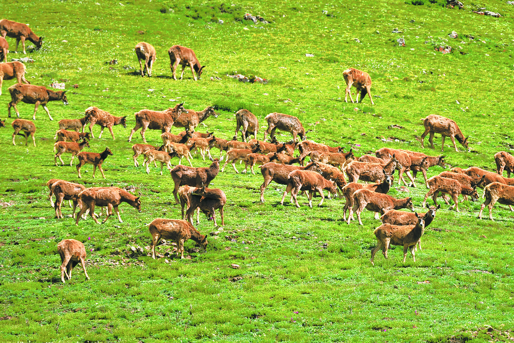 高山上的白唇鹿。张多钧 摄