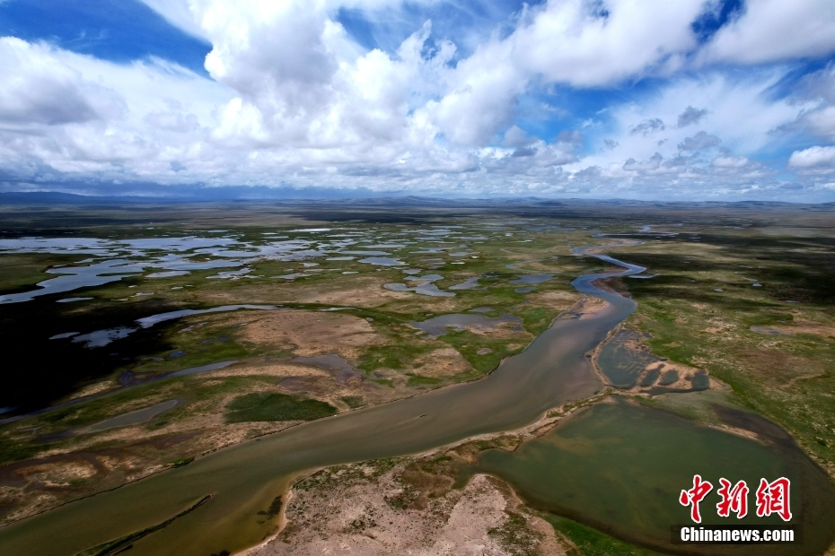 8月24日,航拍青海省果洛藏族自治州玛多县星星海风光。玛多县地处三江源国家级自然保护区核心腹地,素有“黄河源头第一县”“千湖之县”美誉。星星海由大大小小的湖泊、水泊组成,从空中俯瞰无数湖泊宛如繁星。(无人机照片)中新社发 薛蒂 摄