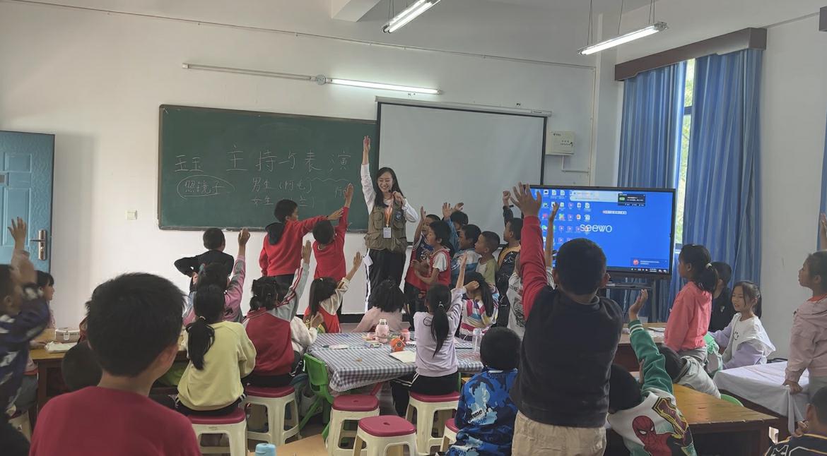 近日,53名“轻风计划”志愿服务第四期大学生志愿者在维西县6个服务点开展了为期10天的志愿服务活动,380余名当地小学生参加。据了解,“轻风计划”项目已持续4年,以“关爱、平等、陪伴、温暖”为核心理念,以“构建连接大学生与祖国乡村的桥梁”为宗旨,发扬脱贫攻坚精神,以大学生深入基层的形式,力图缓解边疆地区教育资源不平衡问题,服务内容以教育扶贫、敬老爱老为主,服务形式以乡村夏令营短期支教为主,用爱心帮助这里的孩子们提高素质、开拓视野。图为中国人民公安大学志愿者李靓玉在维西县永春乡中心幼儿园带领孩子开展励志教育。