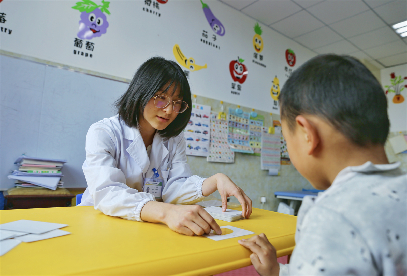 在康复中心,像小星这样的孩子还有很多。“目前在我们这里治疗的大部分是脑瘫、发育迟缓、自闭症、唐氏综合征等特殊儿童,针对不同的症状,我们会通过评估,针对性进行认知、言语、动作、感知觉等训练恢复身体功能、提高生活自理、学习和社会交往能力。努力让特殊儿童融入到正常生活中。”康复中心言语认知康复师杨晶珠说。