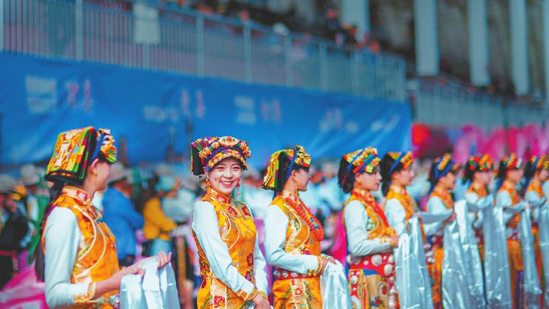 藏族女孩身着盛装参加嘉绒锅庄文化旅游节。马德晖 摄
