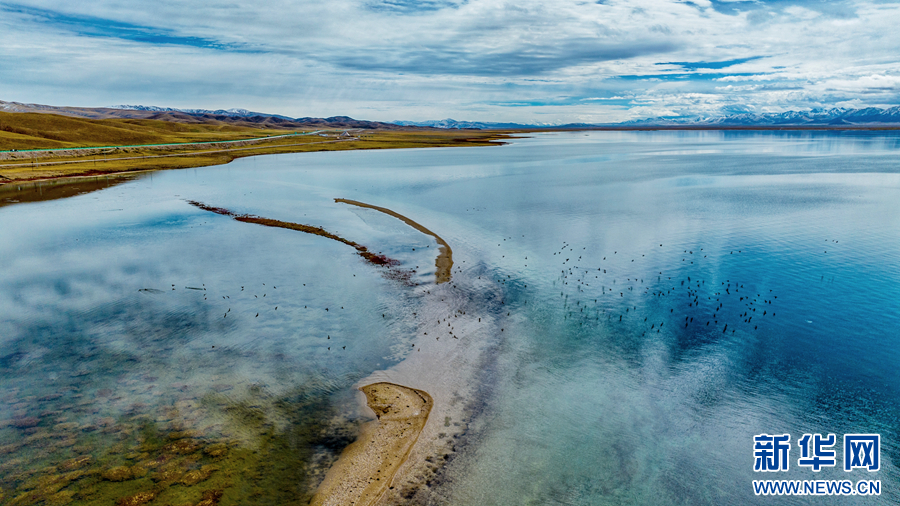 秋日清晨,位于有“千湖之县”之称的青海省果洛藏族自治州玛多县境内的冬格措纳湖湖水湛蓝、天空辽阔,湖畔草地绿黄交融,静美迷人。