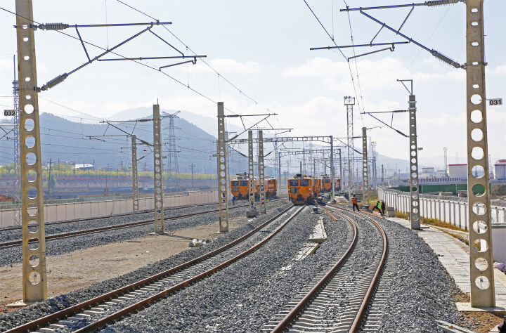 近日,记者在滇藏铁路丽香段香格里拉站看到,现场正在进行大机捣固作业,工人们正紧抓施工进度,高效组织施工作业,全力以赴保障全线顺利开通运营。
