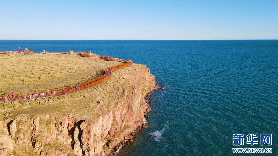 图为青海湖圣泉湾秋景(无人机照片)。新华网 卡娅梅朵 摄