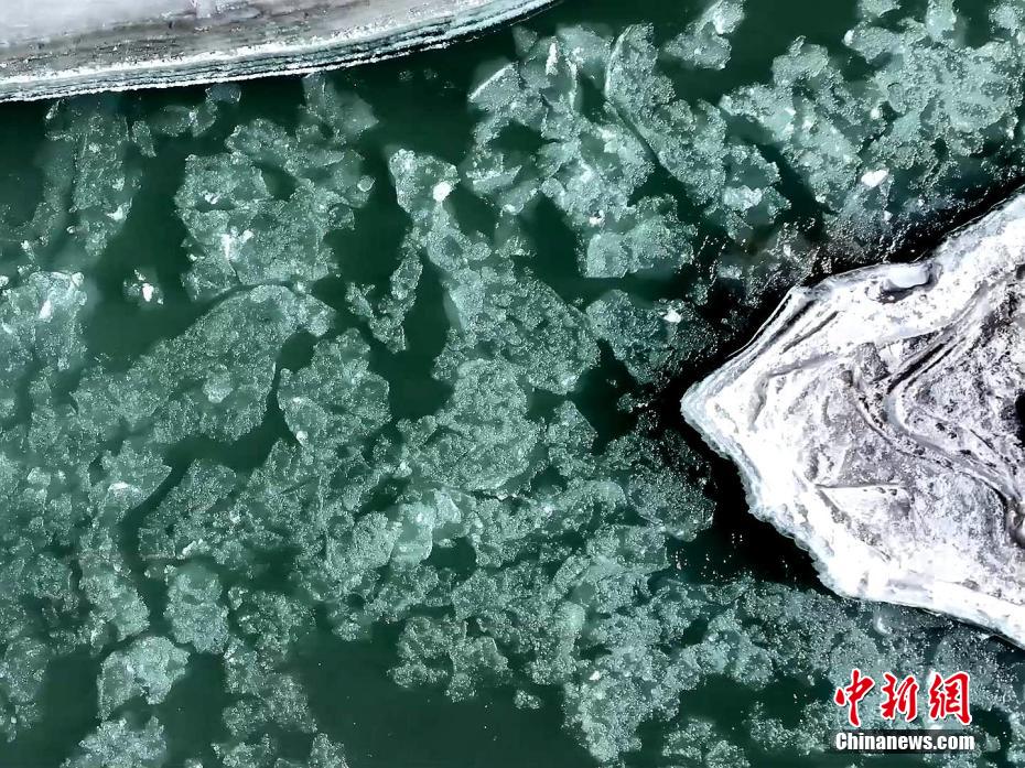 图为黑河流凌仿佛冰晶雪带。包雷 摄