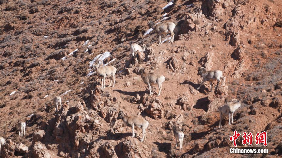 图为盘羊群在山坡上。都兰融媒 供图