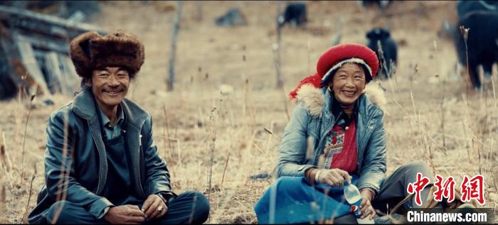 图为纪录片《在世界的香格里拉—央宗的家》剧照,央宗和丈夫丹增培楚在牧场上的闲暇时光。中新网记者 刘冉阳 摄