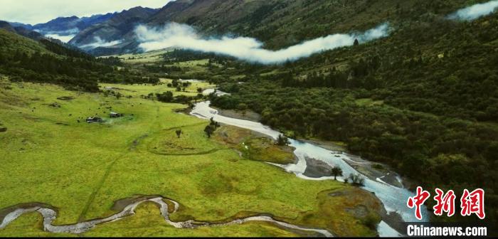 图为纪录片《在世界的香格里拉—央宗的家》剧照。央宗和她的牛、羊、马夏季所在的香格里拉尼汝村高原牧场。中新网记者 刘冉阳 摄